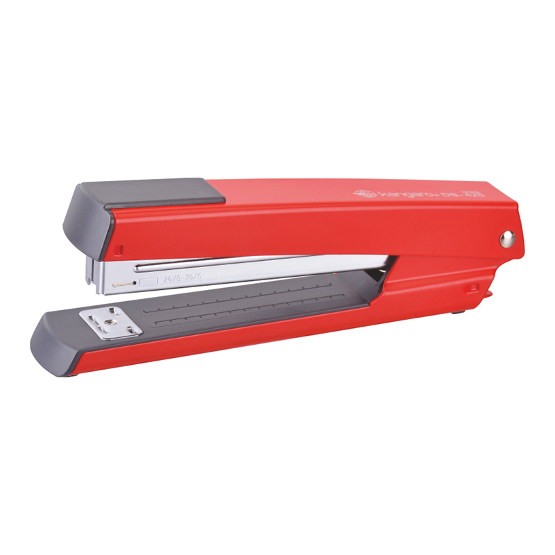 Grapadora de metal de tira completa. Mecanismo de carga rápida de acero. Base de goma antideslizante para evitar arañazos en el escritorio. Yunque giratorio. Extraegrapas incorporado con soporte
